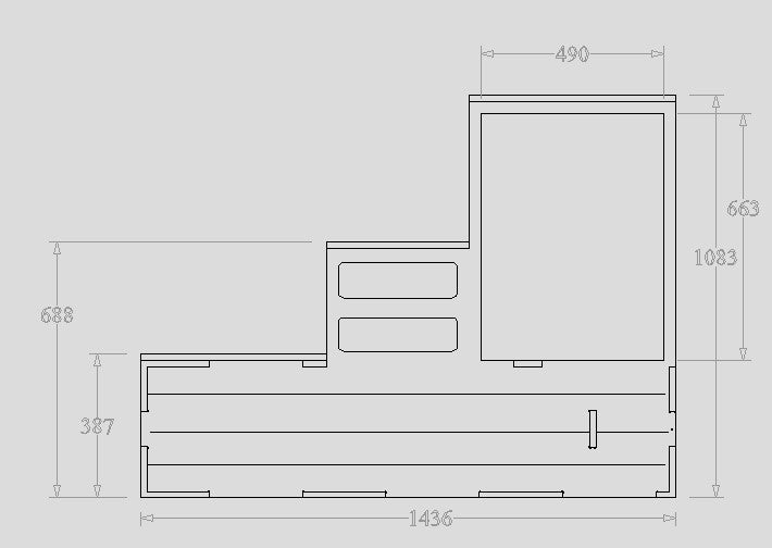 The kitchen size is 1440 (144cm) and the width is 500mm (50cm)